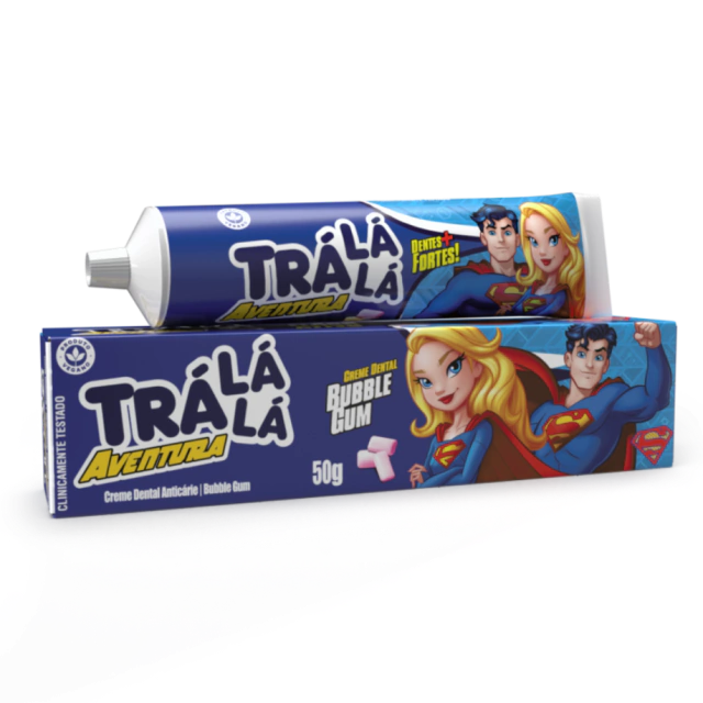 A gente sabe que nessa fase da vida a criança quer comer muitos doces, então criamos uma fórmula com flúor ativo que protege dos ataques da bactéria da cárie. Na Trá Lá Lá é assim, cuidamos com carinho.